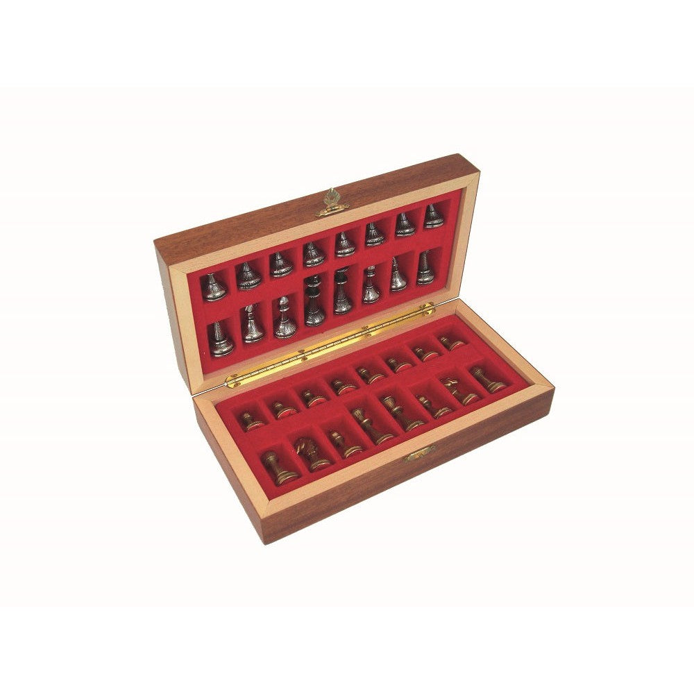 Komplett Schackset 226 Pjäser och schackbrädePjäserMIGNON FLOWER SETMetal Chess MenKING: ht. cm 4,8 – diam. cm 1,9SchackbrädeFOLDING CHESS BOARDFolding Chess Board in mogany wood, hand inlaid with chess compartment insideDim: 24x24x2,8(opened) Artikelnummer: Mozart226