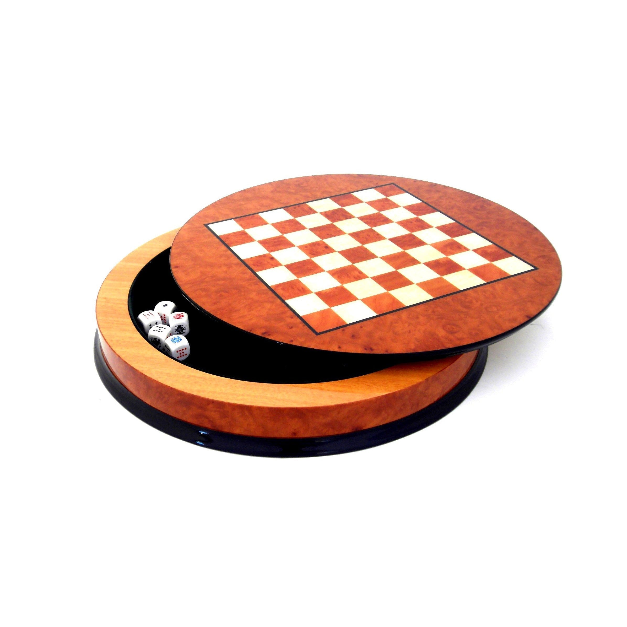 Fint schackbräde med handinläggningar Inklusive 6st pokertärningar Storlek 39 x 5,5 cm Schackrutan 3×3 cm Ett hantverk från Italien. Artikelnummer: 8023517063711
